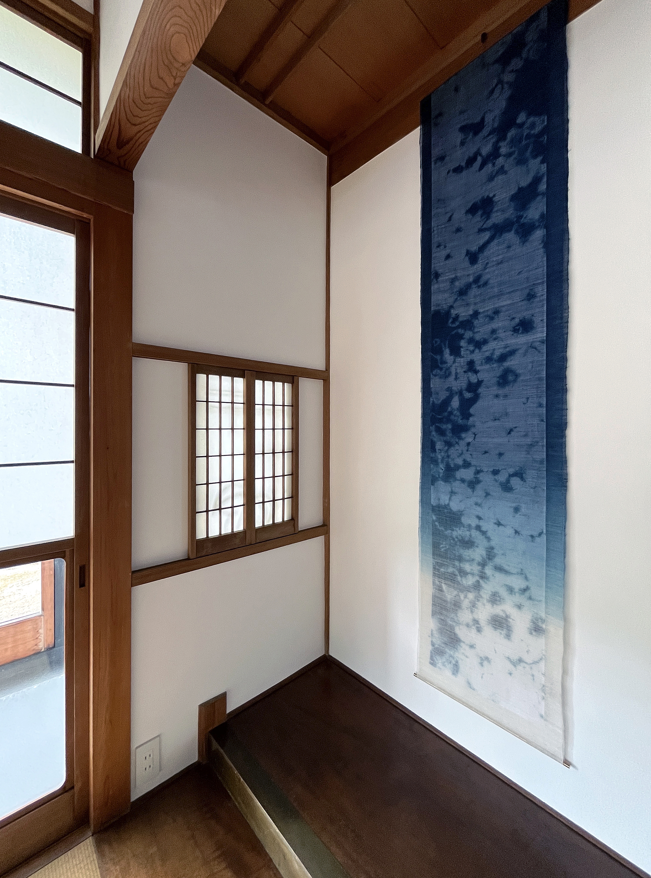 設計:UZU /協力:ペンダントライト_Glass Studio Calore、藍染の掛軸_京都ほづ藍工房